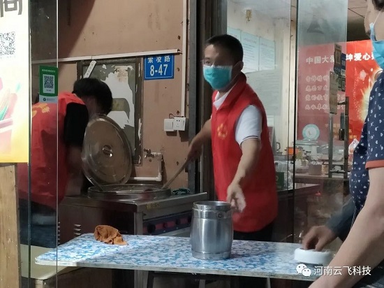 如今,雖然已是初秋,但這里的溫度卻仍是居高不下。16號凌晨四五點,這家“粥鋪”就已傳出熙熙攘攘的聲音。只見云飛科技的義工家人們此時,正在忙碌的準備今天的愛心早餐,爭取第一時間為“綠城”的環(huán)衛(wèi)工人送上清晨的第一份“愛心”,以表達對工作在高溫酷暑一線人們的感謝之情。