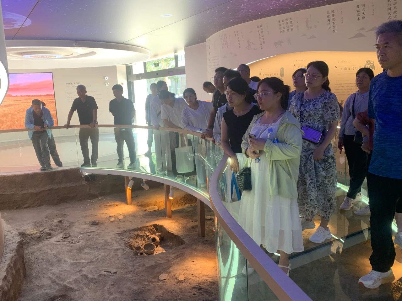 在云飛科技工作人員的引導(dǎo)下,培訓班成員首先參觀了豫見農(nóng)業(yè)數(shù)字科技館。這里以“從傳統(tǒng)農(nóng)耕到智慧農(nóng)業(yè)”的發(fā)展脈絡(luò)為主線,沉浸式呈現(xiàn)了河南省農(nóng)業(yè)機械化、信息化、智能化的發(fā)展成果。